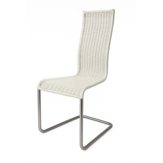 stapelbar, ohne ArmlehnenGestell Edelstahl tube aplatiKunstgeflecht Farbe reinweissSitzhöhe 47 cmBreite 50cm, Tiefe 57cm, Höhe 105cm