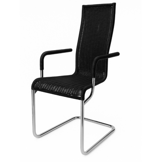 mit umwickelten ArmlehnenGestell Stahlrohr verchromttube aplatiKunstgeflecht schwarzSitzhöhe 47cmBreite 50cm, Tiefe 57cm, Höhe 105cm