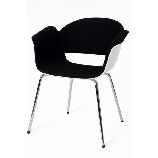 4-Fuß-Gestell verchromt Rückenschale Buche Lack weiß Polsterung Stoff Tonus schwarz (Stoff Tonus= EINZELSTÜCK) Sitzhöhe 47cm Breite 69cm, Tiefe 60cm, Höhe 82cm
