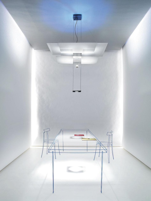 Design Ingo Maurer und Team, 2005Aluminiumblätter matt weiß lackiert1x LED 39W, 2700K, 230VAbhänghöhe max. 300cmBreite 130cm, Tiefe 130cm