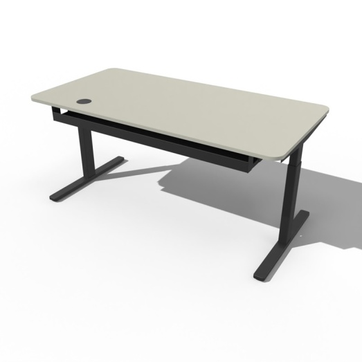 rechteckig mit Soft Edge Platte, mit T-FußSpanplatte 19 mm, Gestellfarbe: SchwarzPlatte: Schlamm Melamin (TM)Kabelauslassbohrung: rechtsKabelwanne schwenkbarBreite 160cm, Tiefe 80cm, Höhe 74cm