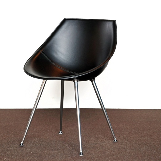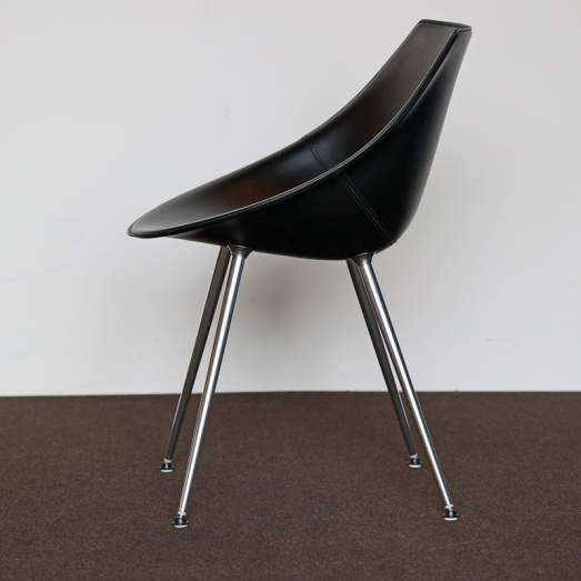 Design Philippe Stark 2005Version schwarzer LederbezugBeine Aluminium poliertKunststoff-Rundgleiter hellSitzhöhe 45cmBreite 60cm, Tiefe 57cm, Höhe 80cm