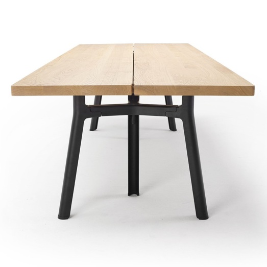 Design Jore van AstPlatte Eiche massiv, mit Fugeweiß geölt C36lokales HolzGestell Epoxy fine texture auf Aluminiumschwarz RAL 9005, Höhe einstellbarBreite 240cm Tiefe 100cm Höhe verstellbar 71-78cm