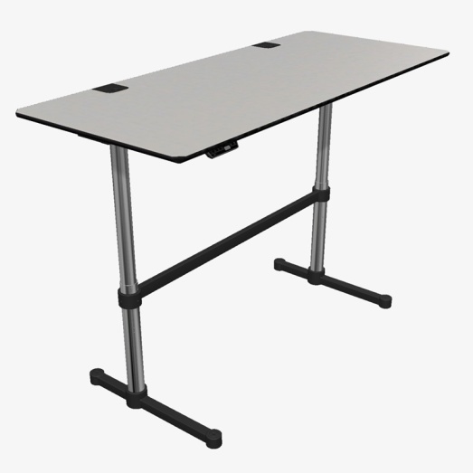 elektrisch höhenverstellb. von 70-120cmTischplatte schiebbar für Kabelführungin Kabelwanne unterhalb TischplatteTischgestell verchromtFussausleger Kunststoff schwarzPlatte Kunstharz pastellgrauBreite 175cm Tiefe 75cmHöhe 70-120cm