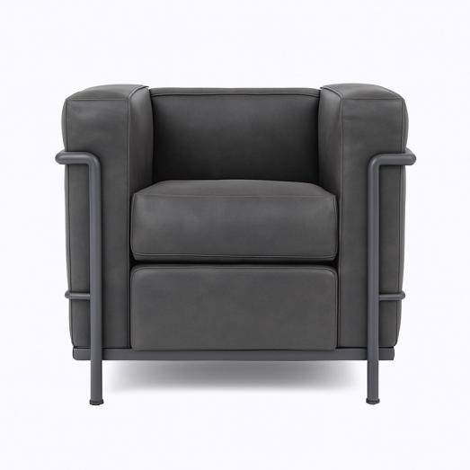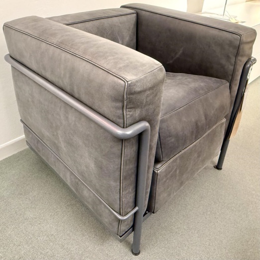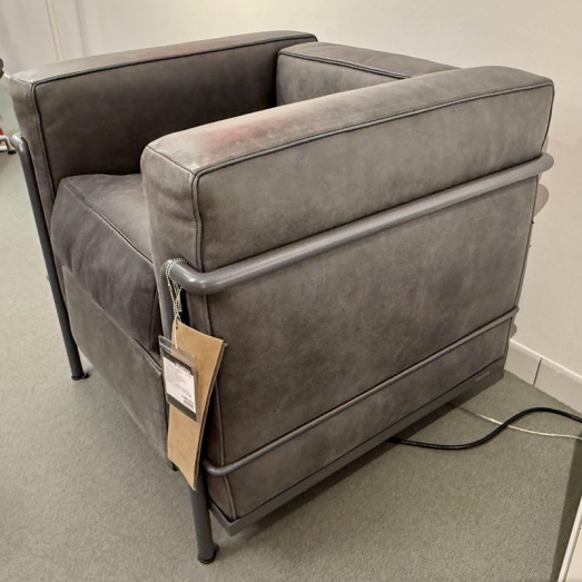 Original! Design Le CorbusierGestell grau matt lackiertBezug Leder Victoria offenporig Farbe 13Z353 anthrazitPolsterung SynthetikSitzhöhe 48cmBreite 76cm, Tiefe70cm, Höhe 67cmLIMITIERT IN DIESER AUSFÜHRUNG