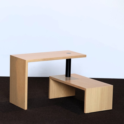 Design Achille CastiglioniAusführung Eiche lackiertVerbindungsstück Stahl schwarzEINZELSTÜCKBreite 60cm, Tiefe 30cm, Höhe 45cm