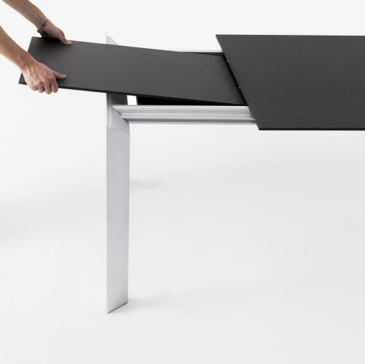 Design Bartolioutdoor geeignet Platte und Verlängerungen Fenix weiß Kos 0032, Kante schwarz Beine Lack matt weiß Breite 166 (203,241-278)cm, Tiefe 90cm, Höhe 75cm