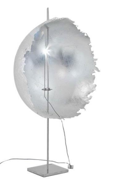 Standfuß und Stab vernickeltHalbkugel Fiberglas silber1x1W LED neutral white 4200K EINZELSTÜCK(neu 2x1W 2700K)Ø 40cm, Höhe 65cm