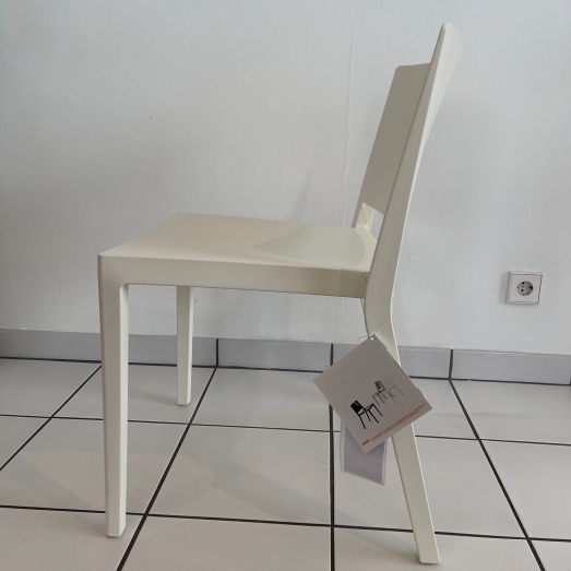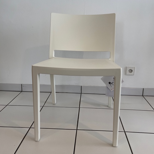 Material thermoplastisches Technopolymerin der Masse eingefärbt oder lackiertStapelbar bis zu 5 StühlenFarbe weißSitzfläche Breite 42cm, Höhe 44cmBreite 50cm, Höhe 74,5cm, Tiefe 52cm