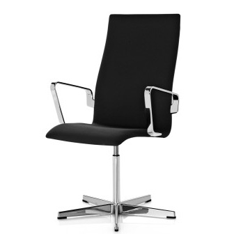 Rücken mittelhoch, mit Armlehnen verchromt, Sitzhöhe fest, drehbarBezug Basic Leder schwarz, Gestell HochglanzSitzhöhe 48 cm, Breite 60cm, Tiefe 57cm, Höhe 102cm