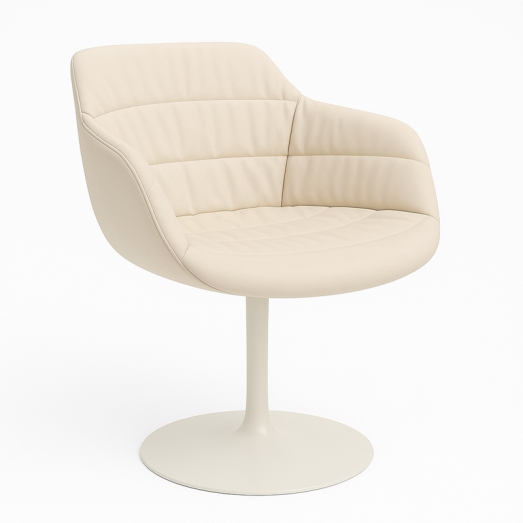 Design J. M. Massaud 2009Drehgestell mit TellerfußLack matt weißSitzschale gepolstert Bezug Stoff Kat. F Londra 01 cremeSitzhöhe 46cmBreite 60cm Tiefe 56cm Höhe 78cm