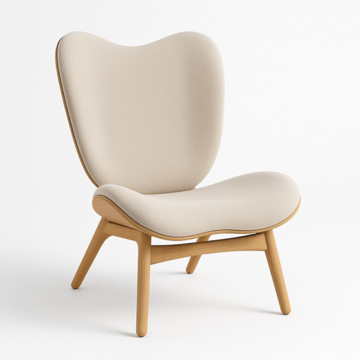 Design Anders KlemLOUNGE CHAIR TALLGestell Eiche FSC zertifiziertBezug Horizons S, austauschbarFarbe White Sands100% recycled polyesterSH42cm B73cm T93cm H106cm