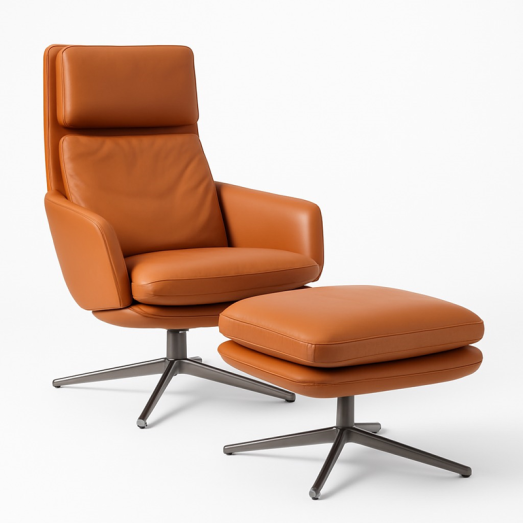 Design Antonio Citterio, 2019Gestell Viersternfuß Alu poliertBezug Polster Leder Premium cognacSchale Rücken/Sitz Leder Forte Decor cognacFilzgleiter für HartbodenHocker B 60cm, T 60cm, H 42,2cmB69cm T83,5cm H101-106cm SH41,5cm