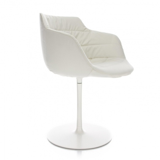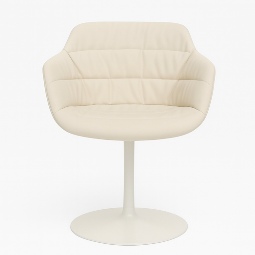 Design J. M. Massaud 2009Drehgestell mit TellerfußLack matt weißSitzschale gepolstert Bezug Stoff Kat. F Londra 01 cremeSitzhöhe 46cmBreite 60cm Tiefe 56cm Höhe 78cm