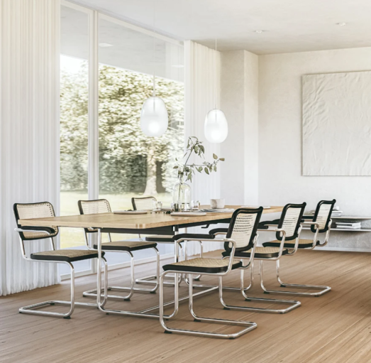 Design Marcel Breuer, 1929/30Sitz und Rücken in Rohrgeflechtinkl. Kunststoff StützgewebeHolzteile Buche gebeizt TP29 schwarzGestell Rundrohr verchromt 25 x 2mminkl. Filzgleiter für ParkettSitzhöhe 46cm, Armlehnhöhe 67cm,Höhe 82cm Breite 58cm, Tiefe 62cm