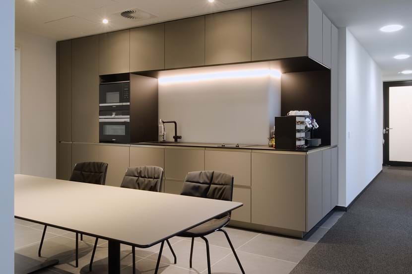 Da die Wahl des Kunden auf das nachhaltige und flexible Möbelbausystem USM Haller fiel, konnten wir als Fachhandelspartner auch die Koordination und fristgerechte Lieferung des Mobiliars übernehmen.