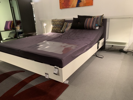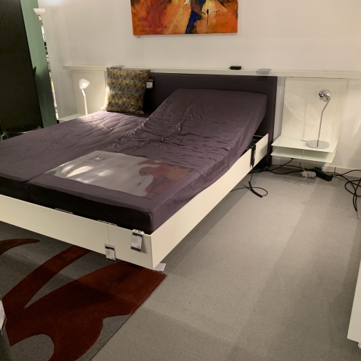 Lack matt M02 kristallweiß1x A8426 Rahmenbett B180cm 1x P.kopfteil Satin W16113,3 lfm Funktionsschiene matt2x LED-Leuchten klappbar2x Winkelablage A6015B 184cm, T 211cm, H 35cm