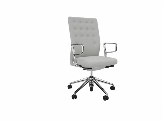 verstellbare Lumbalstütze, Rahmen 53 soft grey Ring-Armlehne alu, nicht höhenverstellbar Vorwärtsneigung & Sitztiefenverstellung Bezug Plano 05 cremeweiss/sierragrau 5-St.-Untergestell Alu poliert, Rollen weich Sitzhöhe 40-52cm B 70-94cm T 66-79cm H 99-110cm