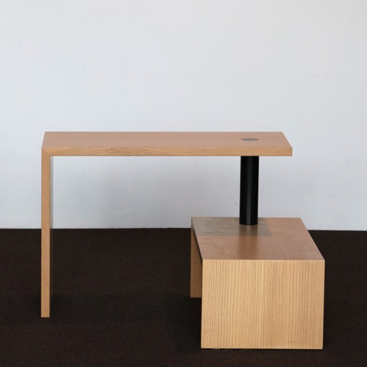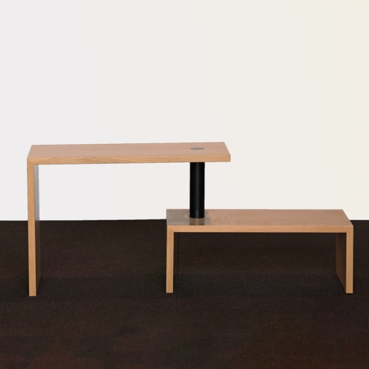 Design Achille CastiglioniAusführung Eiche lackiertVerbindungsstück Stahl schwarzEINZELSTÜCKBreite 60cm, Tiefe 30cm, Höhe 45cm