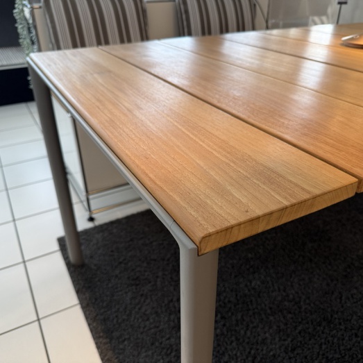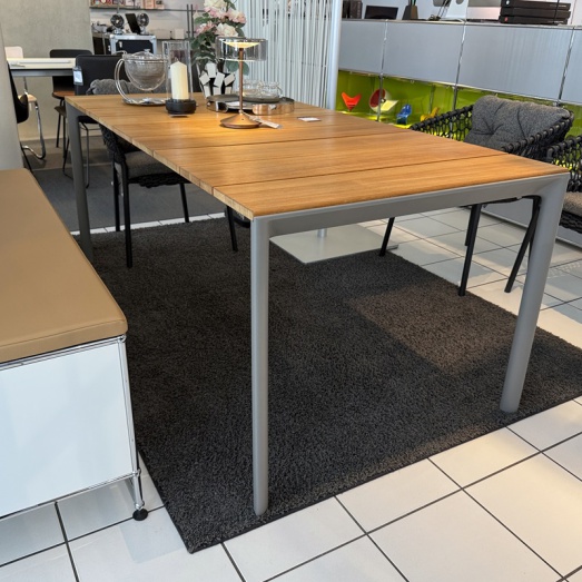 Design Bartoliausziehbar Platte Teakholzplatten (Breite je 19,5cm) Beine und Verlängerungen: grau lackiertes Aluminium Breite 179-219-259cm Tiefe 90cm Höhe 76cm