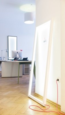 EINZELSTÜCKRahmen aus Alu pulverbeschichtetFarbe weißDiffusor Acrylglas mattTextilkabel Farbe pinkLeuchtmittel LED warmweißBreite 60cm, Tiefe 4cm, Höhe 150cm
