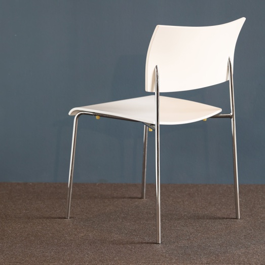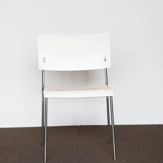 Design Peter Horn 2006Gestell verchromt Ausführung weiß lackiertEINZELSTÜCKSitzhöhe 45,5cmBreite 50cm, Tiefe 50cm, Höhe 78,5cm