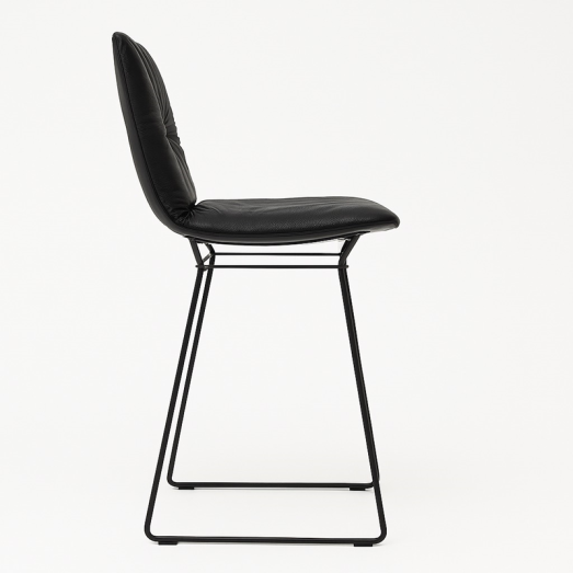 Design Birgit HoffmannVariante StandardBezug Leder Sahara Ebony 60009Drahtgestell 1.1 Metall schwarz ME001inkl. KunststoffgleiterSitzhöhe 72cm (Altern.82cm od.65cm)Höhe Fußablage 26cmBreite 50cm Tiefe 59cm Höhe 110cm